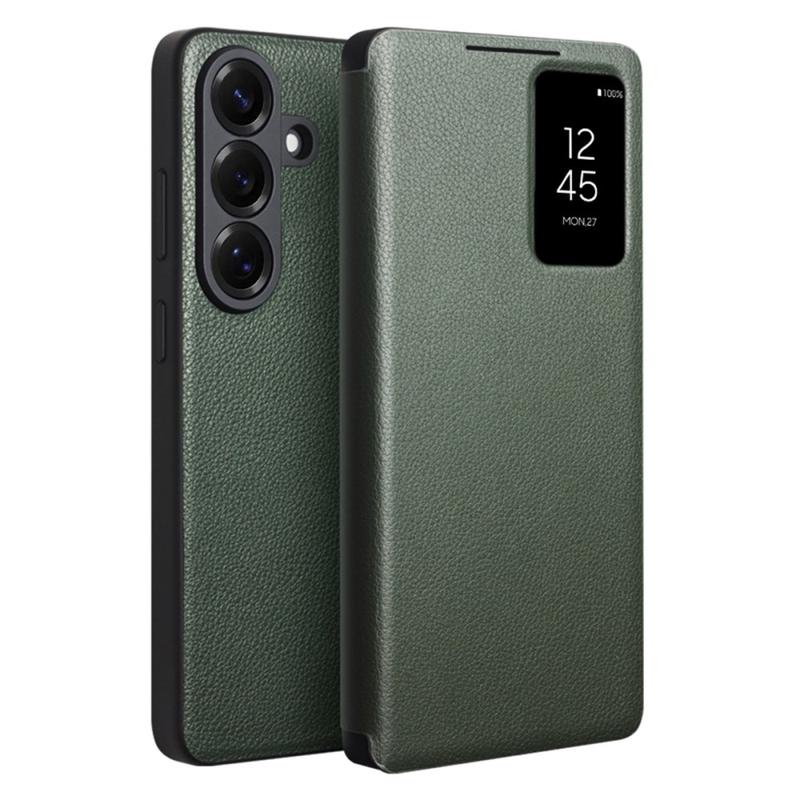 Samsung Galaxy S26 Qialino Smart View Flip Lædercover - Grøn