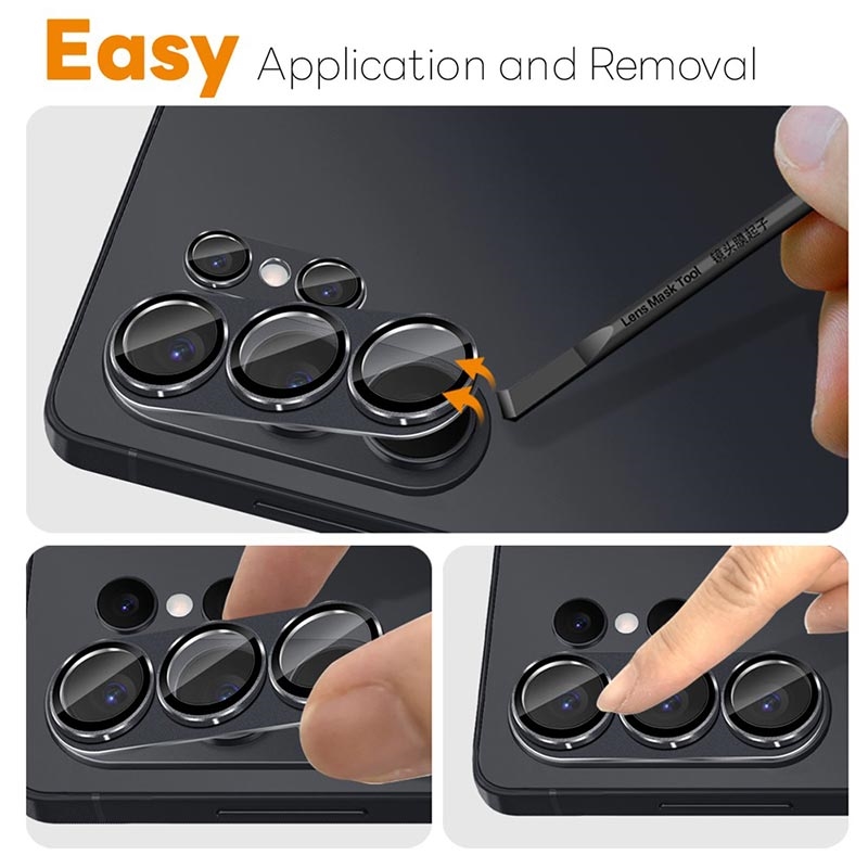 I modsætning til plastiklinsedæksler giver hærdet glas med integrerede metalrammer op til 3 gange større modstandsdygtighed over for ridser og fald, hvilket forlænger levetiden for dine kameralinser, samtidig med at den førsteklasses æstetik bevares.