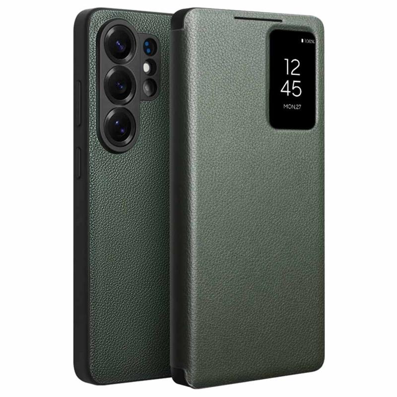 Samsung Galaxy S26 Ultra Qialino Smart View Flip Lædercover - Grøn