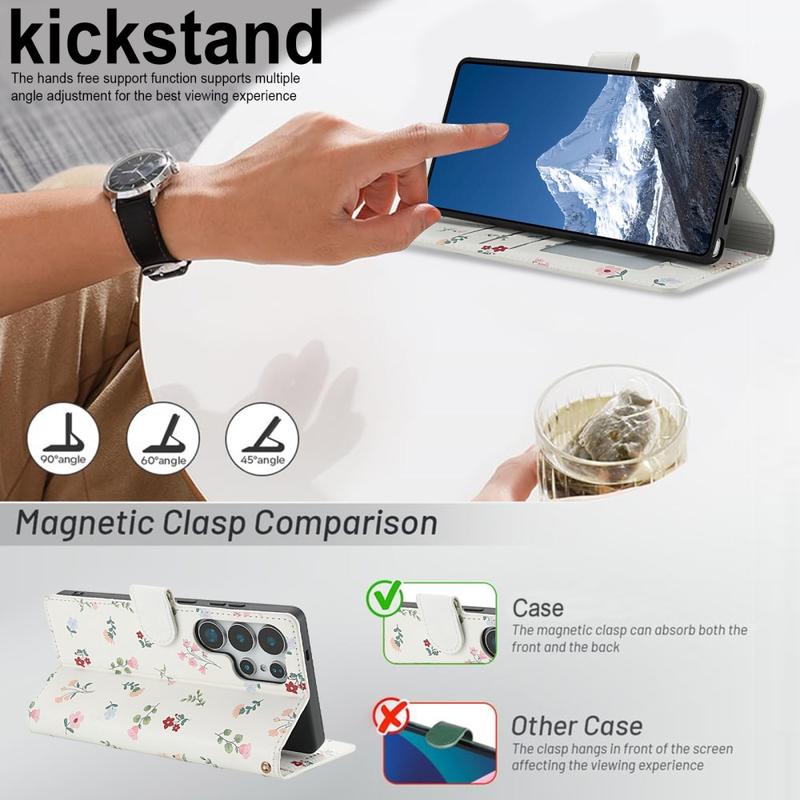 Rhombisk Blomsterpung til Samsung Galaxy S26 Ultra - med rem og kortholdere