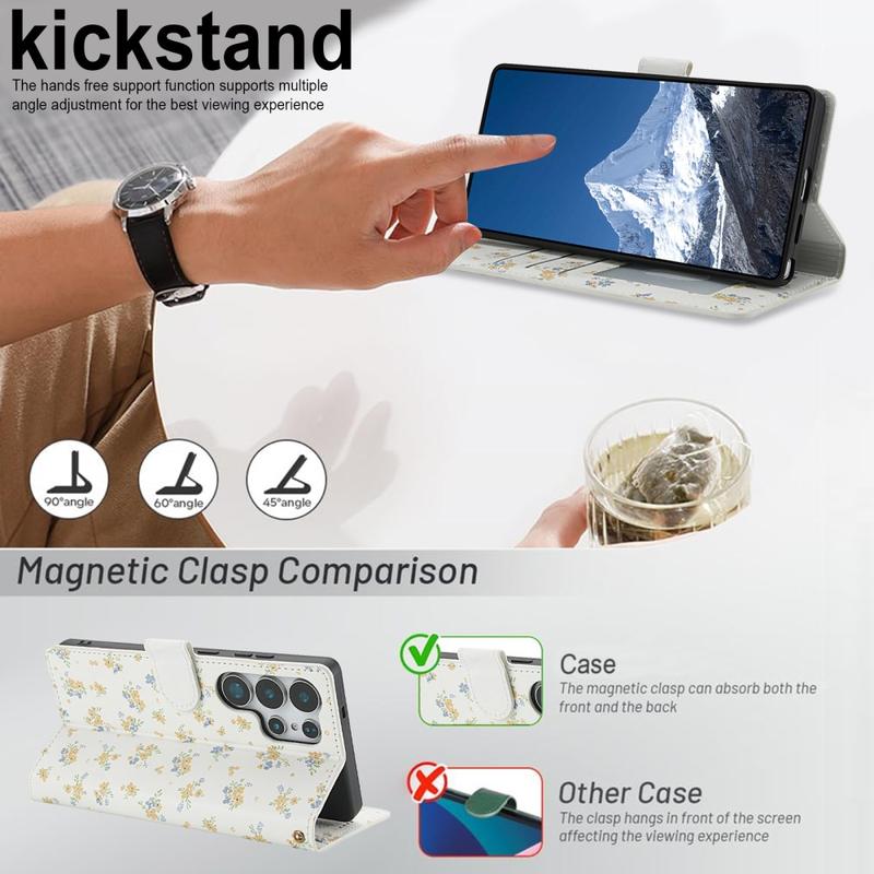 Rhombisk Blomsterpung til Samsung Galaxy S26 Ultra - med rem og kortholdere