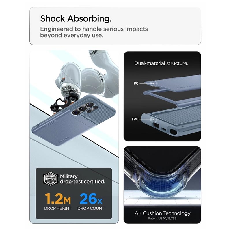 - Spigen Slim Armor CS coveret er testet mod fald og har en militærlignende beskyttelse - MIL-STD 810G-516.6