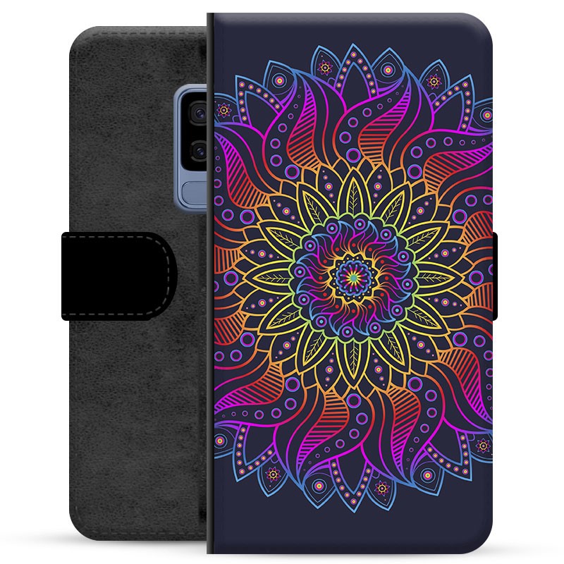 Samsung Galaxy S9+ Premium Flip Cover med Pung - Farverig Mandala