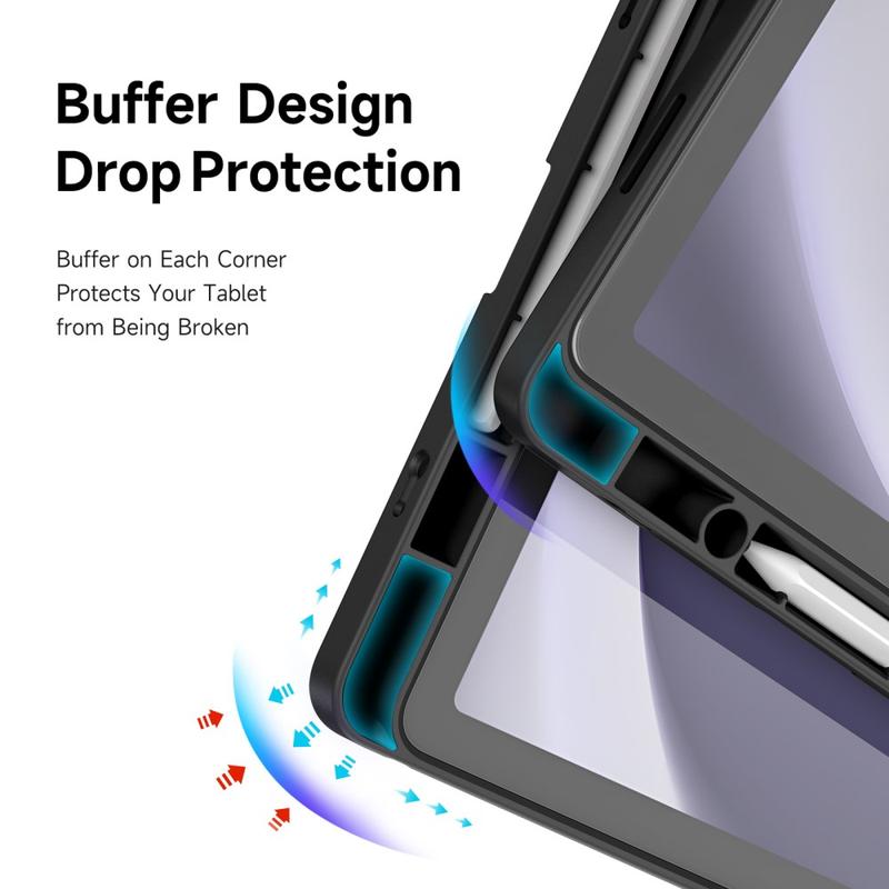Ultratynd: Den slanke, lette og bløde forside er lavet af førsteklasses PU-læder, det ridsefri indre giver god beskyttelse, og TPU-rammen + PC-bagside gør din tablet mere stabil