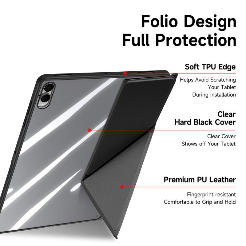Ultratynd: Den slanke, lette og bløde forside er lavet af førsteklasses PU-læder, det ridsefri indre giver god beskyttelse, og TPU-rammen + PC-bagside gør din tablet mere stabil