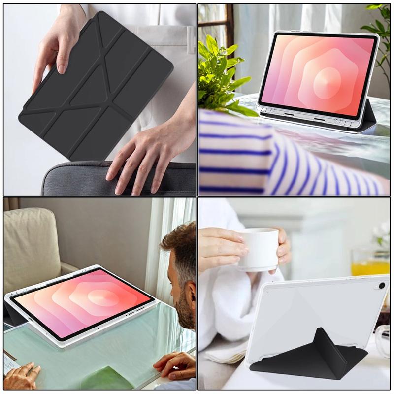 - Førsteklasses materialekonstruktion - Fremstillet af polyuretan af høj kvalitet, fleksible TPU-kanter og et gennemsigtigt akrylbagpanel for at levere holdbarhed, beskyttelse og en elegant æstetik, der fremhæver din tablets originale design.