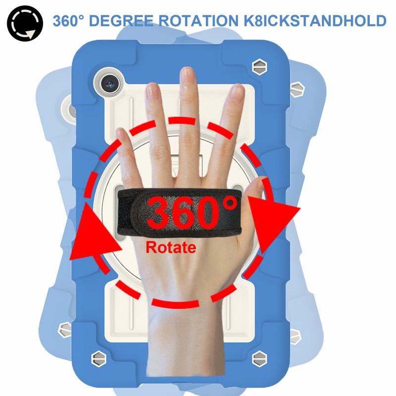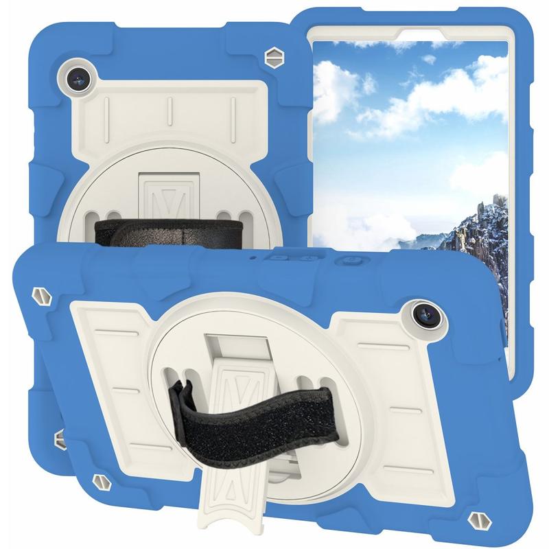 Dette robuste hybrid cover beskytter din Samsung Galaxy Tab A9 mod hverdagens skader samt stød og fald. Det integrerede stativ kan drejes 360 grader, og kan nemt opstilles i vandret eller lodret position. Coveret inkluderer også en skulderrem og en håndrem, så du sikkert kan bære på din Samsung Galaxy Tab A9.