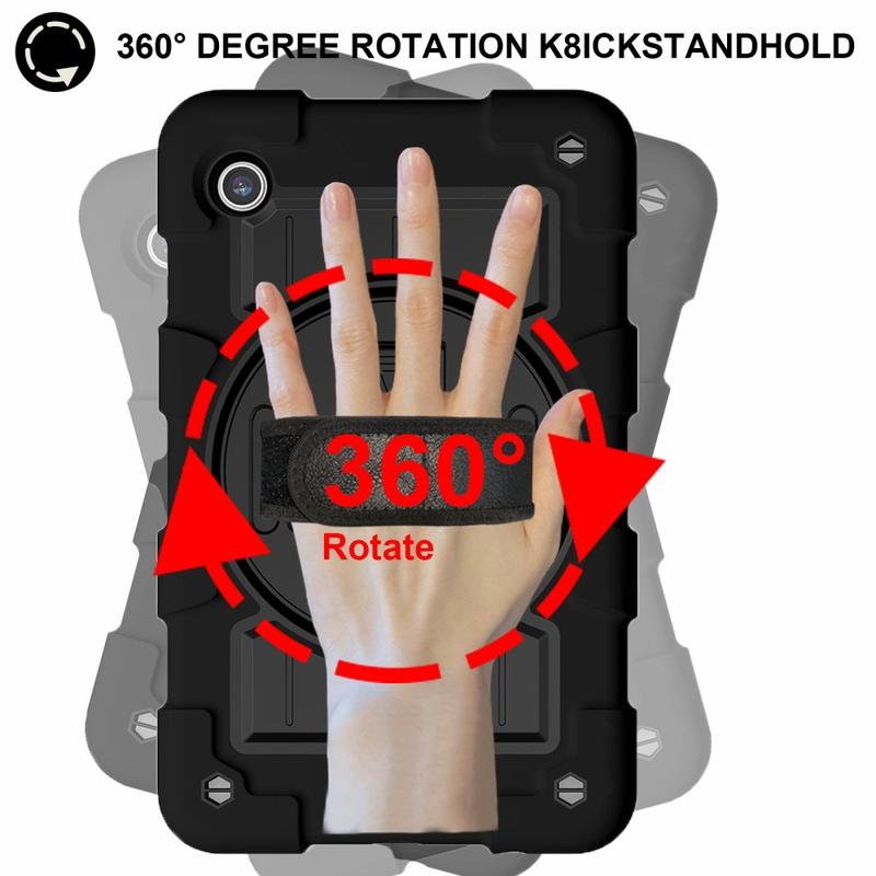 Samsung Galaxy Tab A9 Heavy Duty 360 Cover med Håndrem - Sort
