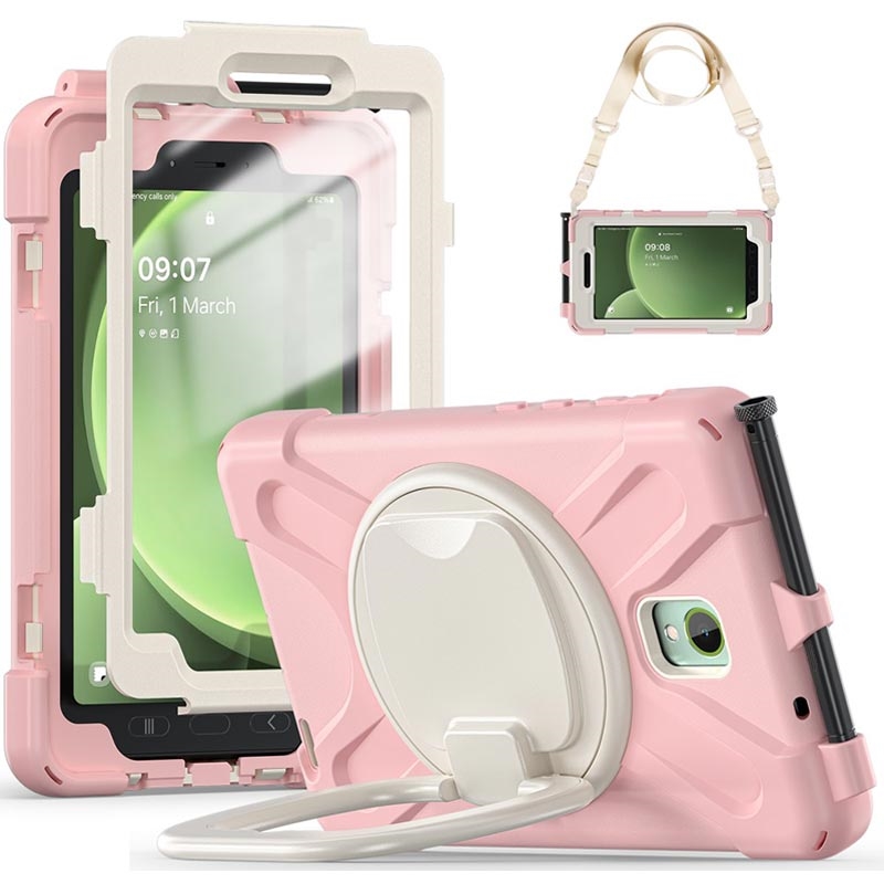 Samsung Galaxy Tab Active5 Heavy Duty 360 Cover med Håndrem - Pink / Hvid