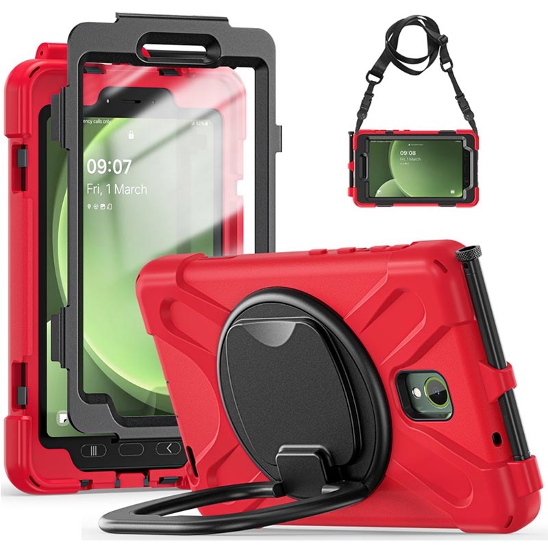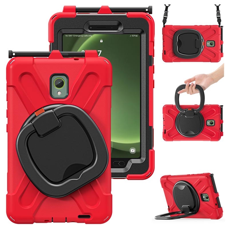 Samsung Galaxy Tab Active5 Heavy Duty 360 Cover med Håndrem - Rød / Sort