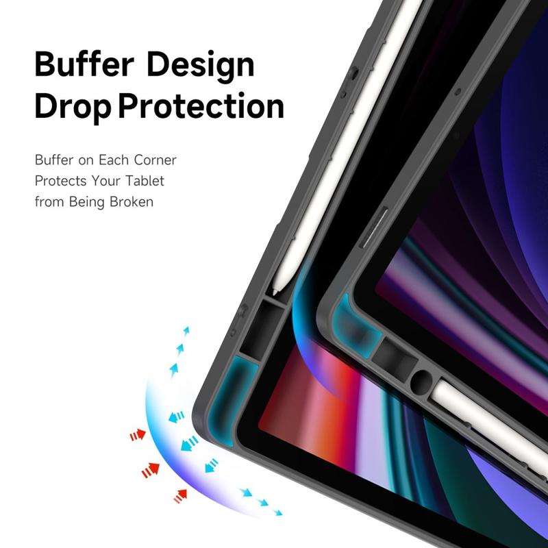 Ultratynd: Den slanke, lette og bløde forside er lavet af førsteklasses PU-læder, det ridsefri indre giver god beskyttelse, og TPU-rammen + PC-bagside gør din tablet mere stabil