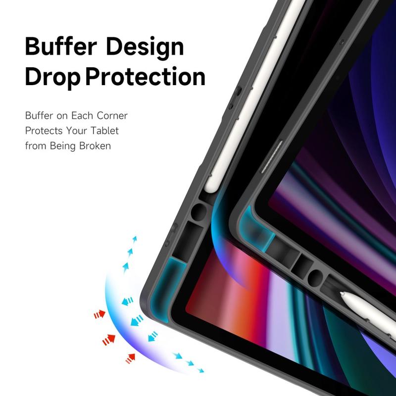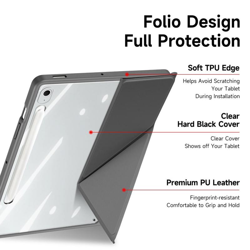 Ultratynd: Den slanke, lette og bløde forside er lavet af førsteklasses PU-læder, det ridsefri indre giver god beskyttelse, og TPU-rammen + PC-bagside gør din tablet mere stabil
