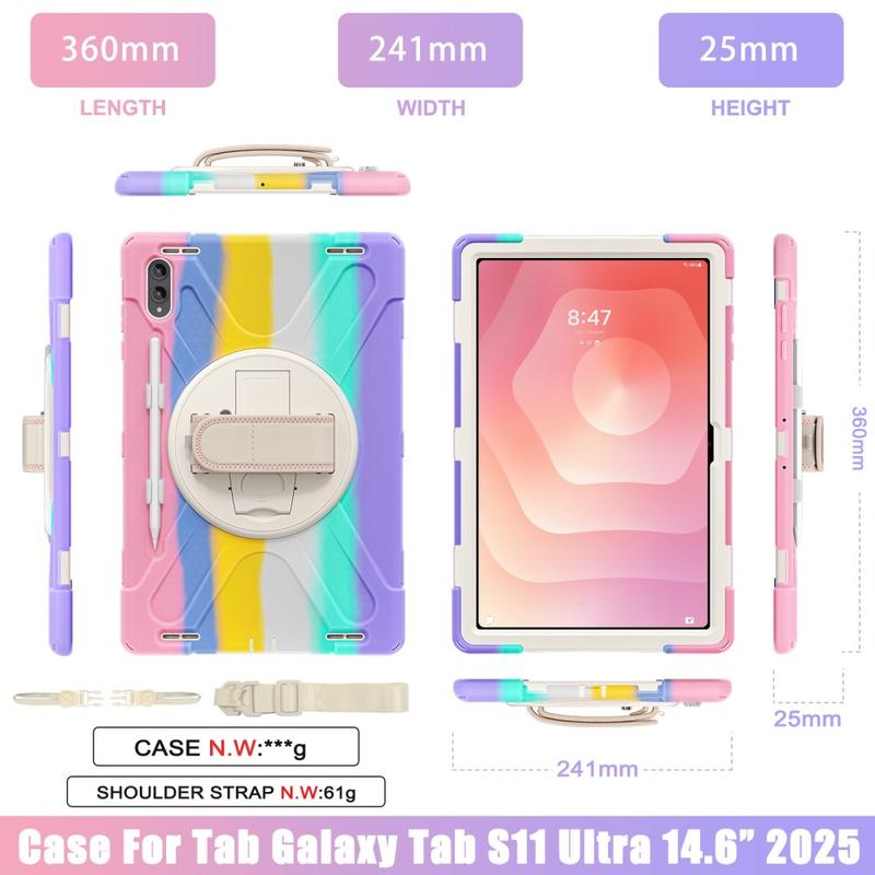 Samsung Galaxy Tab S11 Ultra Heavy Duty 360 Cover med Håndrem - Farverig