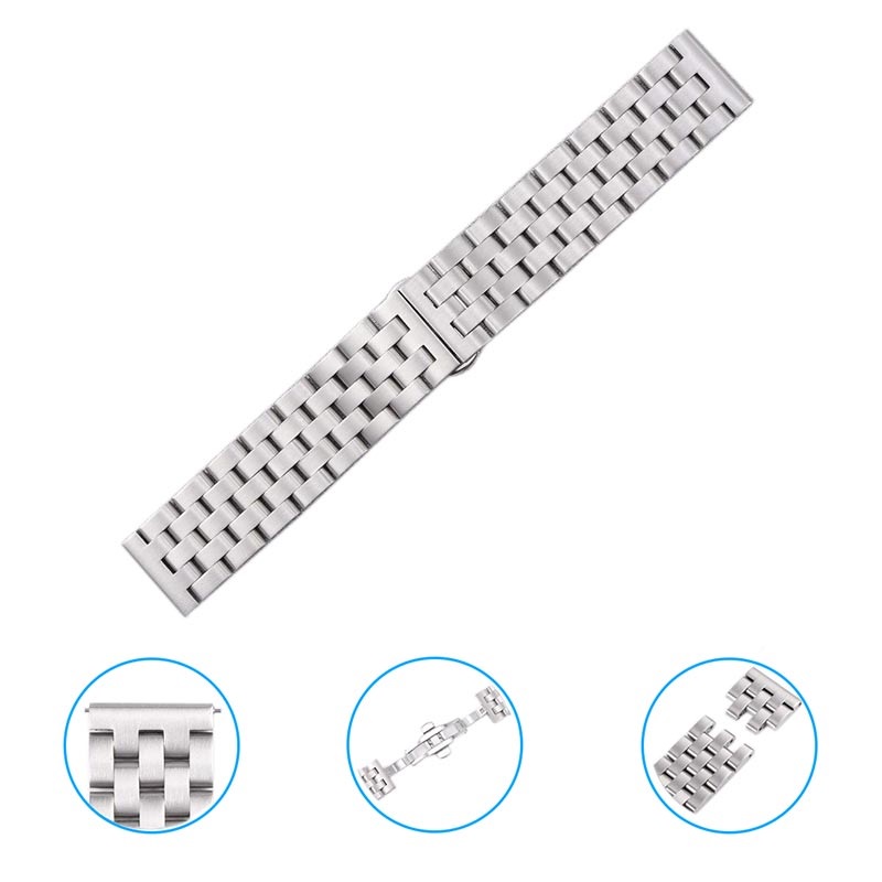 Giv dit Samsung Galaxy Watch et førsteklasses udseende med denne klassiske urrem af rustfrit stål.