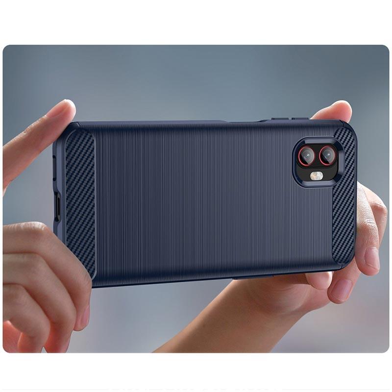 Samsung Galaxy Xcover6 Pro Børstet TPU Cover - Karbonfiber - Blå