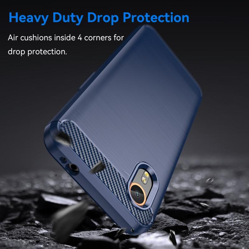 Det børstede TPU-cover beskytter din Samsung Galaxy Xcover7 tilstrækkeligt, mens det giver den en fantastisk stil, takket være dets kulfibermønster på bagsiden. Coveret sikrer også mod overophedning, når du bruger din Samsung Galaxy Xcover7, med dets varmeafledningsdesign.