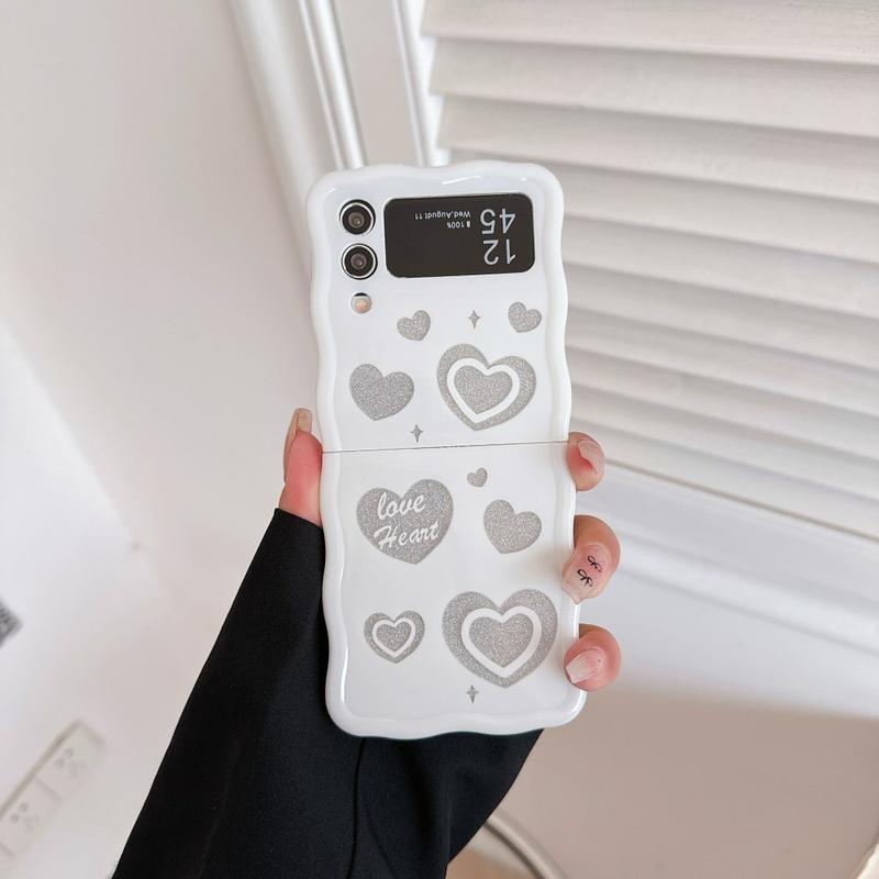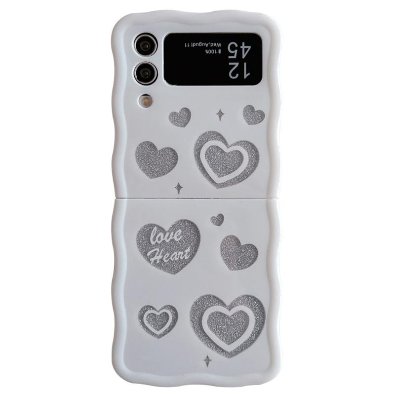 Samsung Galaxy Z Flip4 Glitter Wavy Edge TPU Cover - Hjerter