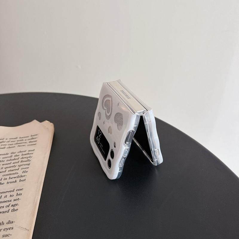 Samsung Galaxy Z Flip4 Glitter Wavy Edge TPU Cover - Hjerter