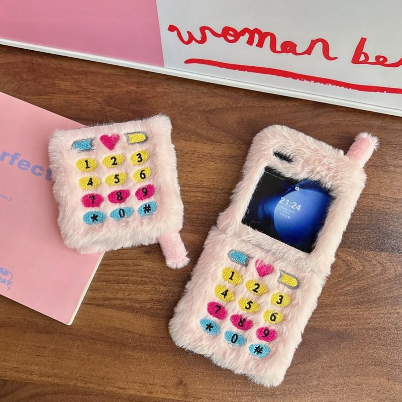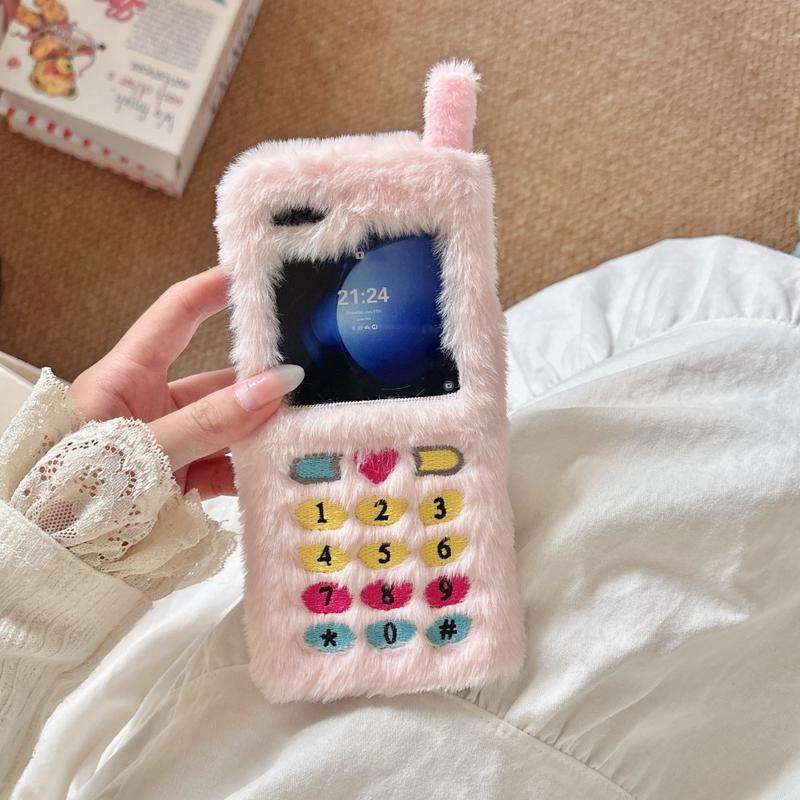 Retro plys cover til Samsung Galaxy Z Flip6, Galaxy Z Flip7 FE med broderede opkaldstaster