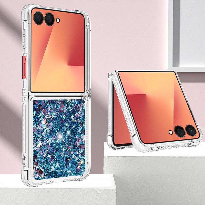 Samsung Galaxy Z Flip7 Glitter Quicksand TPU Cover - Blå hjerter