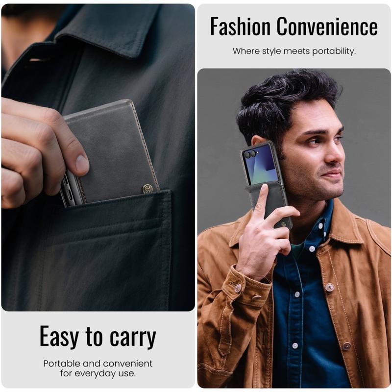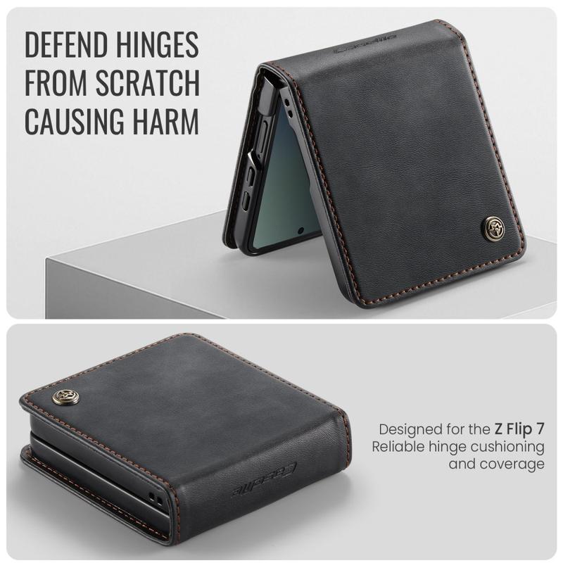 Samsung Galaxy Z Flip7 Caseme 033 Pung Etui med Kalvemønster og RFID-blokering - Sort