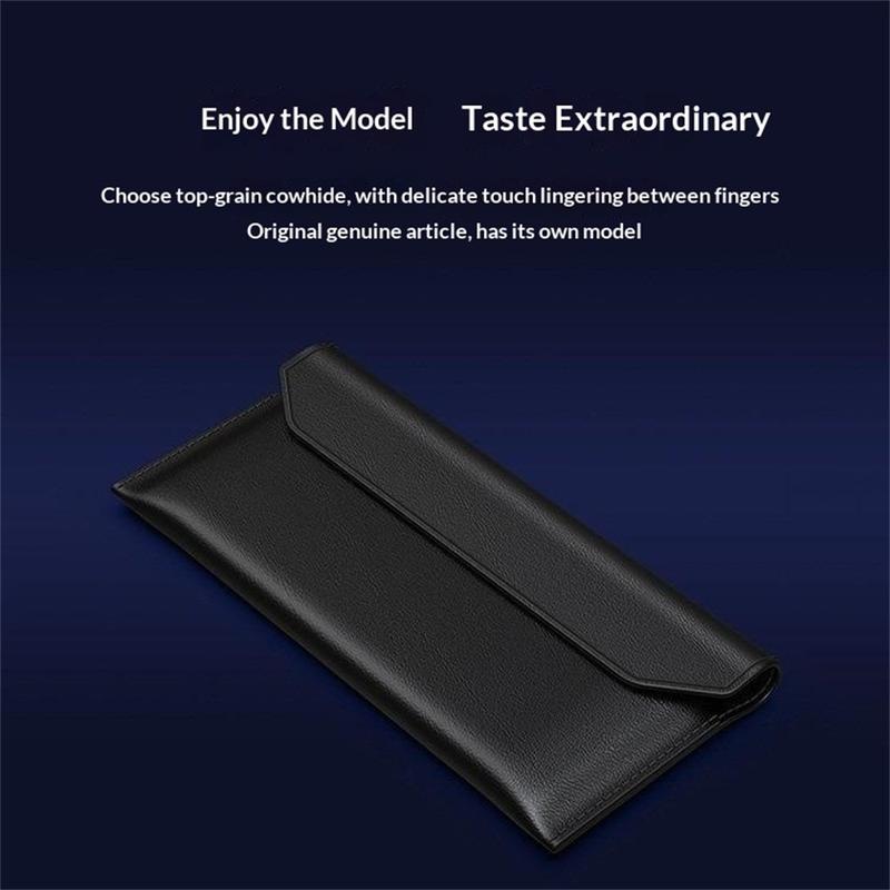 På trods af de førsteklasses materialer er etuiet let og slankt og fylder minimalt. Den glider nemt ned i lommer, håndtasker eller dokumentmapper, hvilket gør den ideel til daglig pendling og rejser.