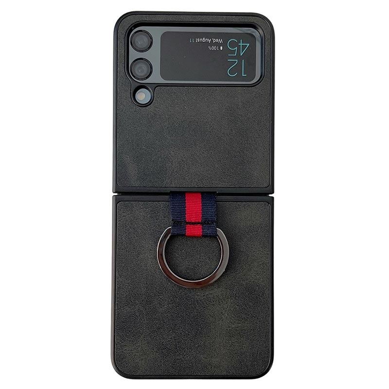 Samsung Galaxy Z Flip4 Dækket Cover med Metal Ring - Sort