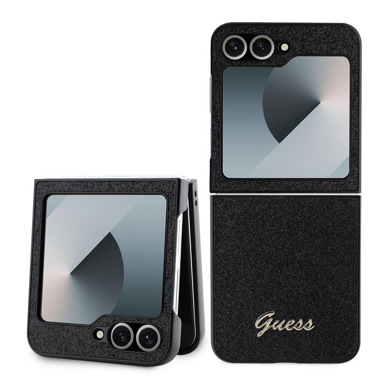 Samsung Galaxy Z Flip6/Z Flip7 FE Guess Glitter Flakes Metal Logo Hybrid Cover