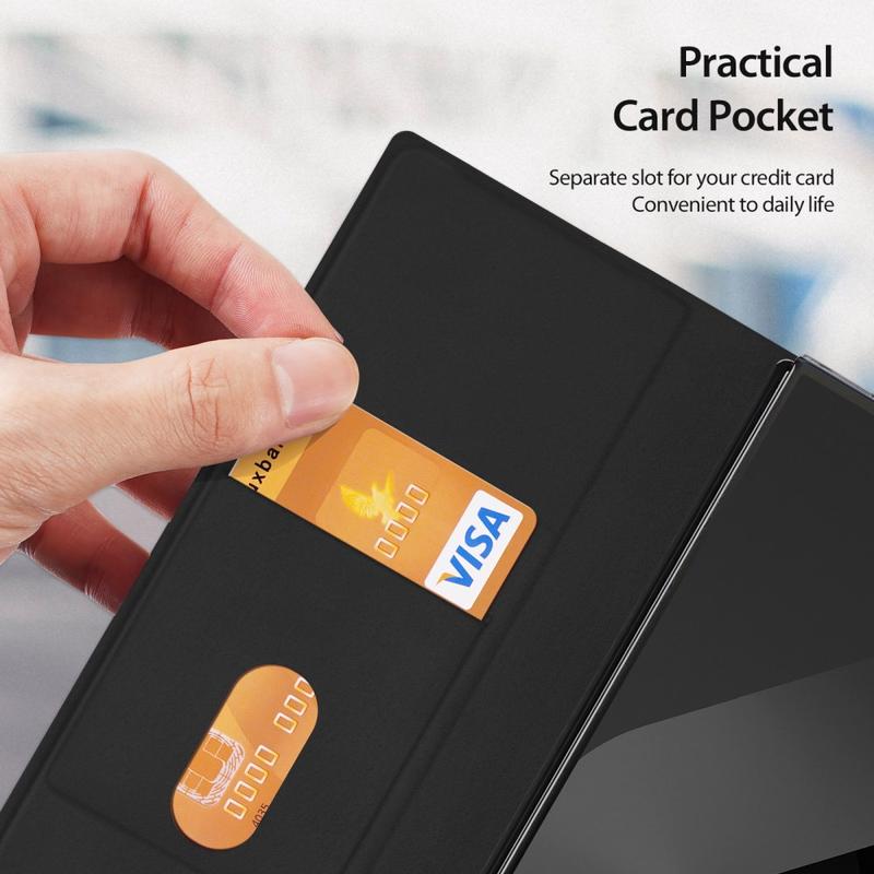Levér beskyttelse på højeste niveau til din dyrebare Samsung Galaxy Z Fold Special, og giv den et slående og iøjnefaldende look med dette førsteklasses flip cover fra Dux Ducis. Coveret har hævede kanter rundt om kameraet for ekstra sikkerhed og en indvendig kortplads til dit ID-kort, bankkort eller et andet vigtigt kort.