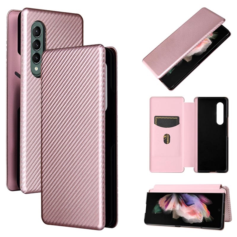 Samsung Galaxy Z Fold3 5G Flip Cover - Karbonfiber - Rødguld