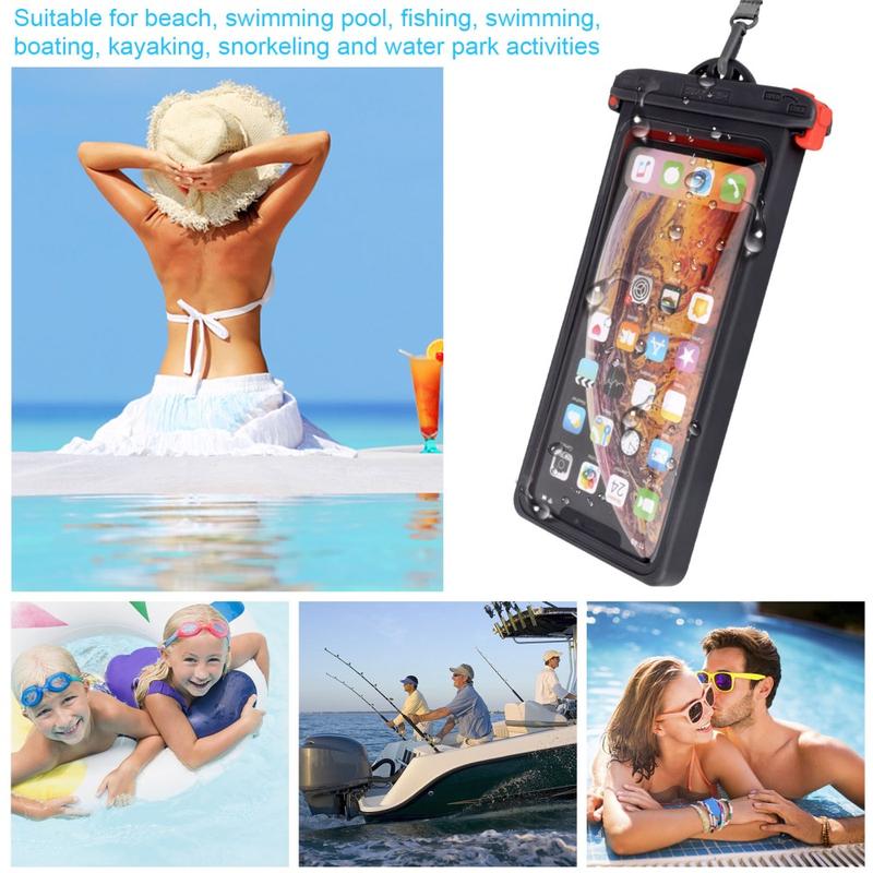 Udvendig dimension: 18,5*9m*1,3cm, indvendig dimension: 17*8,5*0,9cm, passer til de fleste smartphones op til 6,9 tommer. Denne vandtætte dry bag er velegnet til strand, swimmingpool, fiskeri, svømning, sejlads, kajakroning, snorkling og vandparkaktiviteter.