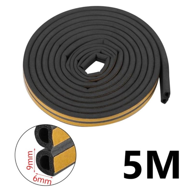 EPDM selvklæbende tætningsliste til døre og vinduer - antikollision, vindstopper og støjreduktion - 5m, 9x6mm