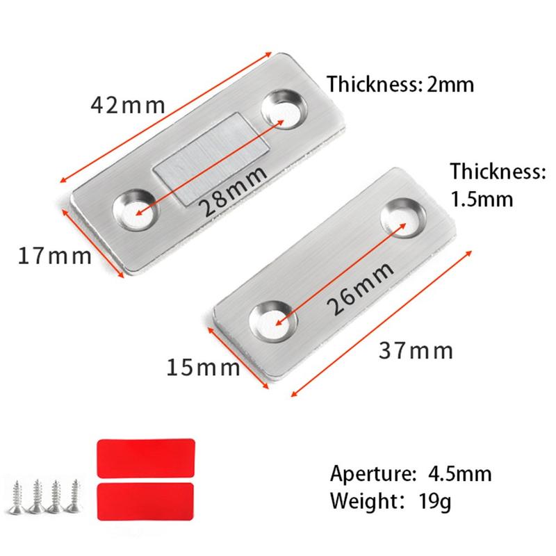 Denne magnet til skabslåger er tynd nok til, at du kan ignorere den, men stærk nok til at holde skabslåger, skuffer, skabe, skydedøre og andre døre lukkede.