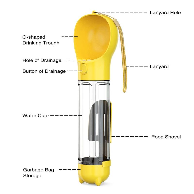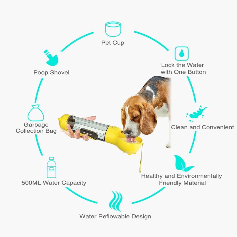 SH-01 Bærbar, multifunktionel vandflaske til hunde med lortepose-dispenser - 500 ml, BPA-fri