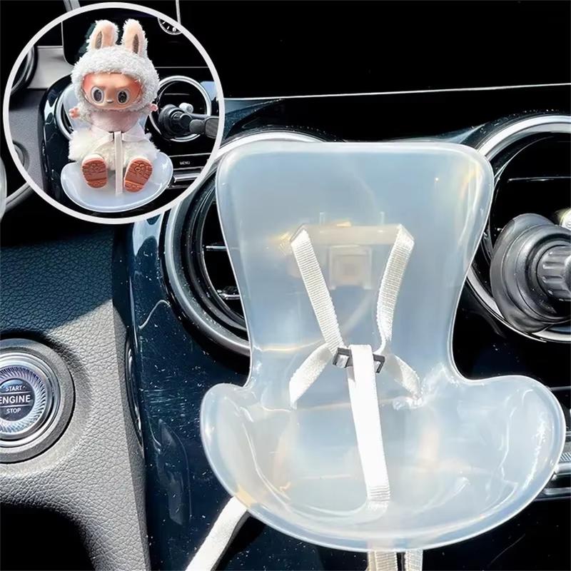 Labubu Mini Sikkerhedsautostol - Clip-on montering til bilventilation til 17cm plysfigurer, indbygget sikkerhedssele, interiørdekoration