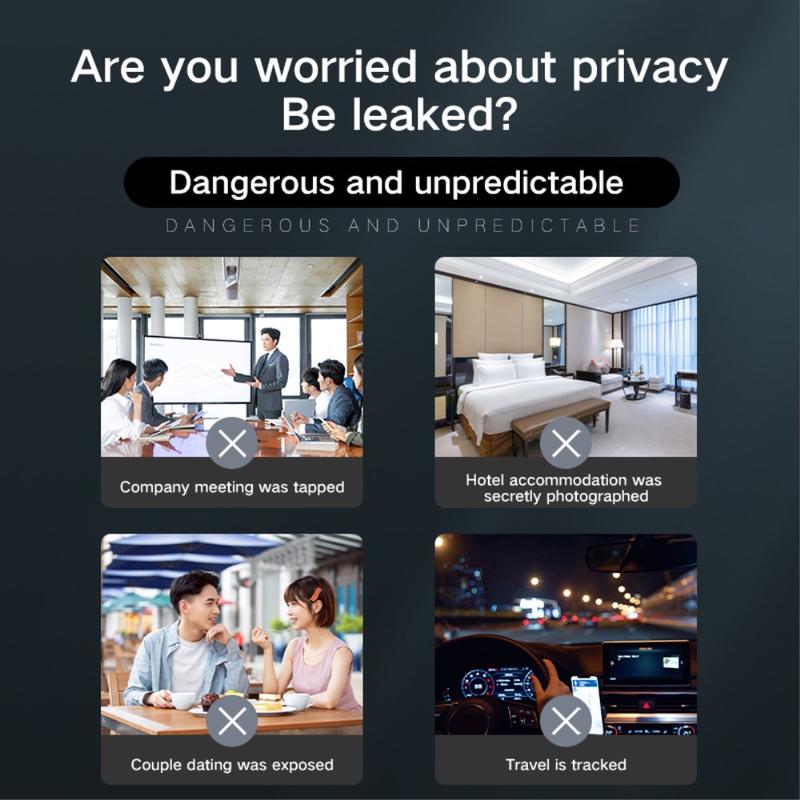 Denne detektor kan identificere 2G/3G/4G SIM-kortbugs, GPS-lokalisatorer, skjulte kablede/trådløse kameraer, spionmikrofoner, overvågningsudstyr og endda WiFi-kameraer, der opererer på 1,2 GHz, 2,4 GHz og 5,8 GHz. Den kan også tjekke for lækage af elektromagnetisk stråling fra husholdningsapparater som mikrobølger.