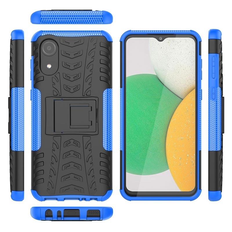 Skridsikkert Samsung Galaxy A03 Core Hybrid Cover med Stativ - Blå / Sort