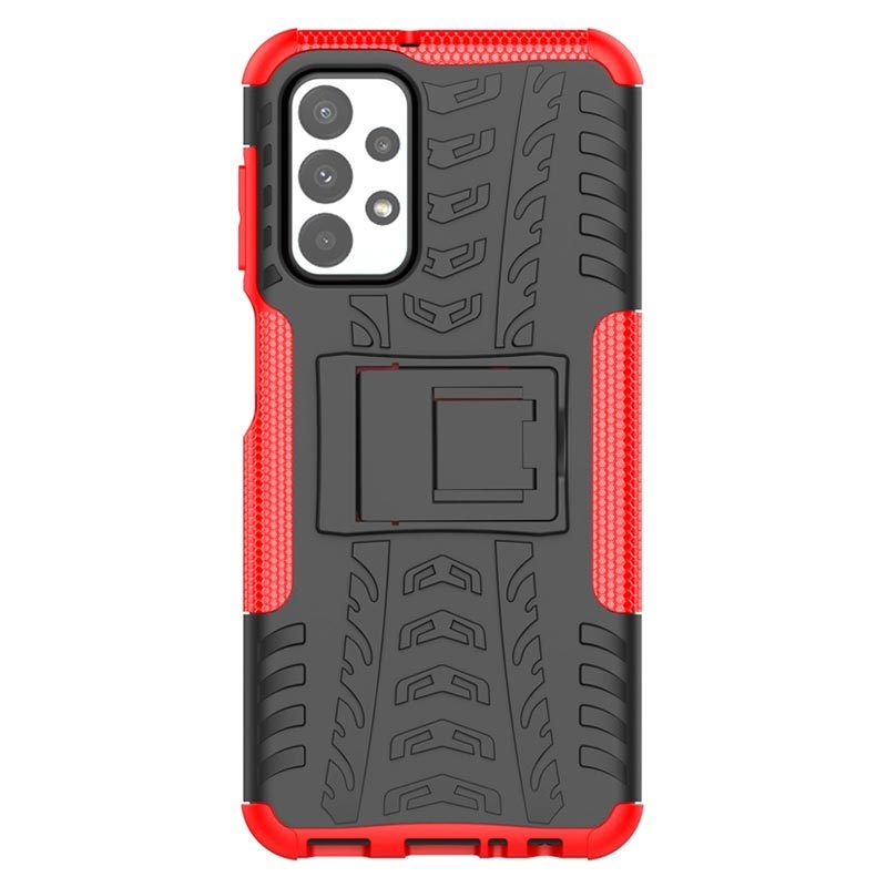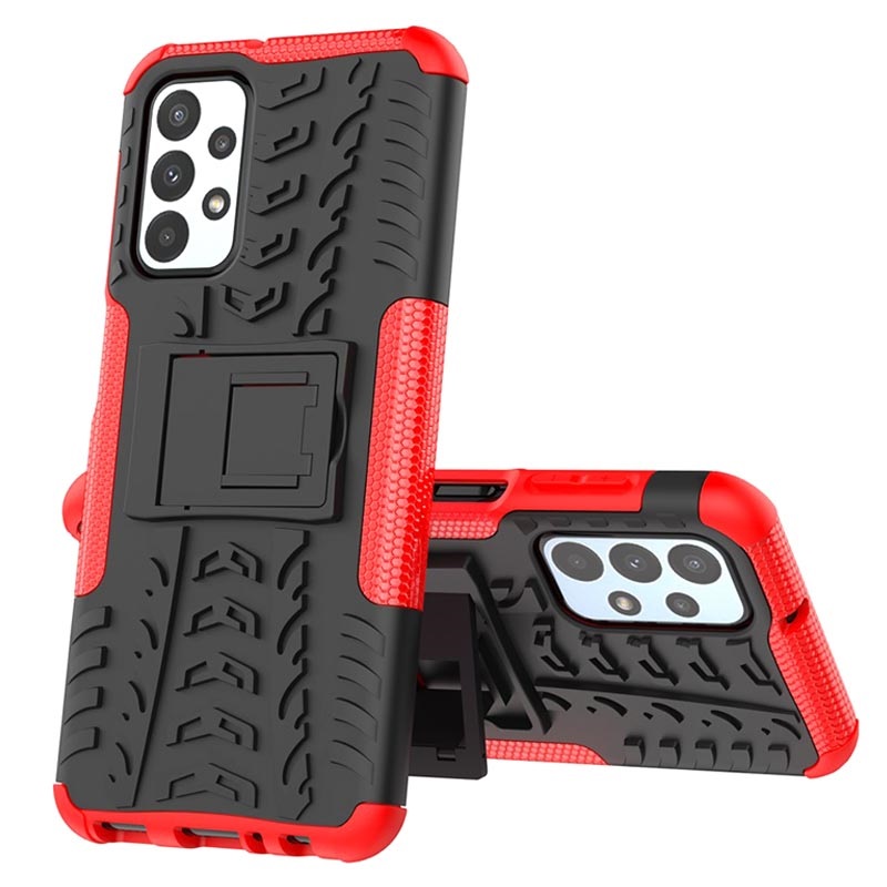 Skridsikkert Samsung Galaxy A23 Hybrid Cover med Stativ - Rød / Sort