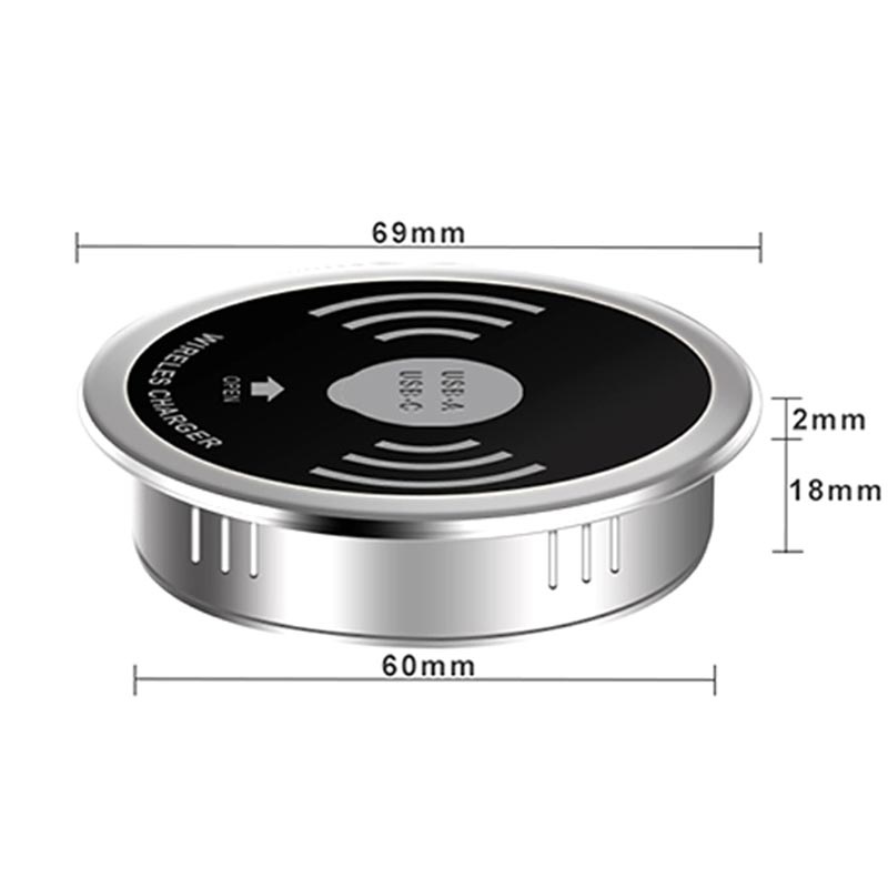 - KP-ZMC Qi-oplader til indlejring i dit skrivebord med Type-C PD og USB-A porte