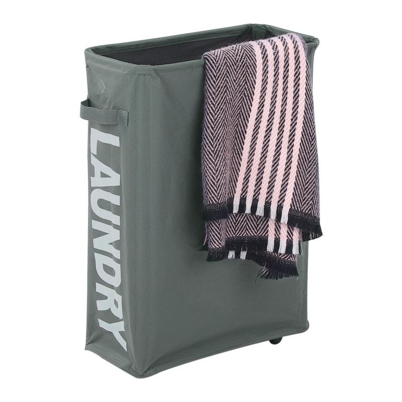 Den foldbare vasketøjskurv Corner Slim kombinerer holdbarhed, mobilitet og et pladsbesparende design - perfekt til moderne hjem, små rum eller alle, der ønsker en praktisk og stilfuld måde at organisere vasketøjet på.