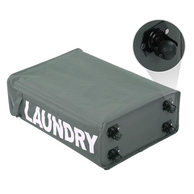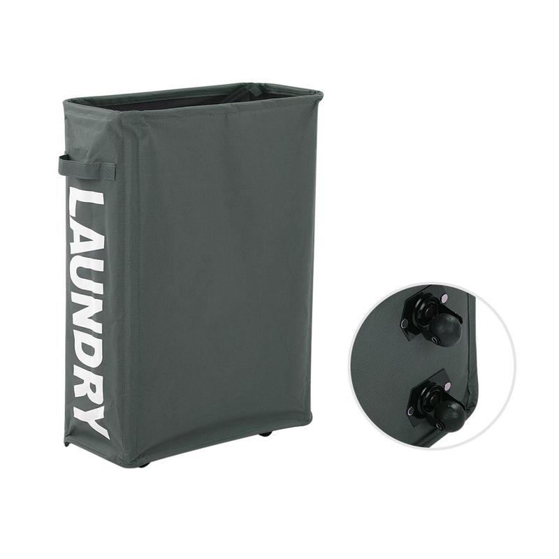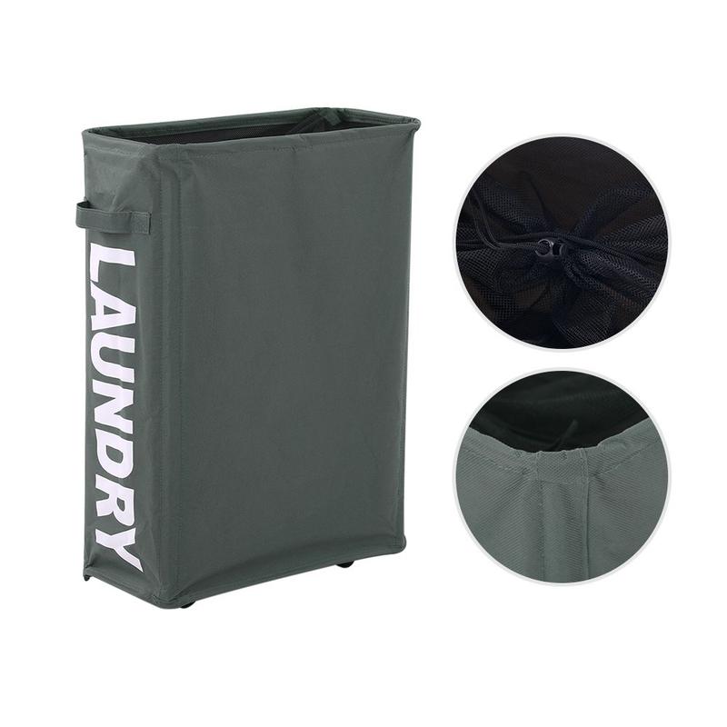 Slank foldbar Oxford vasketøjskurv med hjul og netlåg med snor - hjørnekurv til beskidt tøj