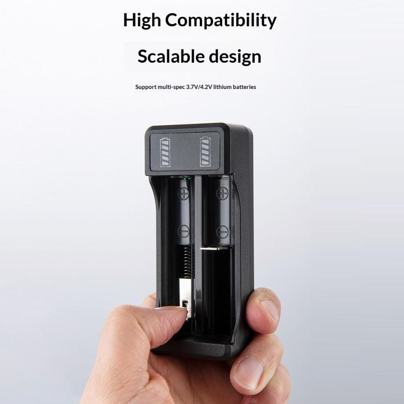 Den smarte USB-oplader til litium-ion-batterier med 2 slots giver en sikker, effektiv og intelligent måde at oplade dine genopladelige litium-ion-batterier på. Hvert slot fungerer uafhængigt, så du kan oplade et eller to batterier på samme tid uden at påvirke ydeevnen. Opladerens indbyggede intelligente chip stopper automatisk opladningen, når batterierne når fuld kapacitet, hvilket er med til at forlænge batteriets levetid og sikre sikker brug i hverdagen.