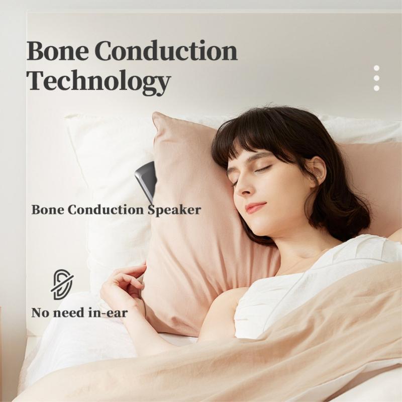 Knogleledningsteknologi er historisk set blevet brugt i høreapparater og militære kommunikationssystemer, så man kan høre eksterne lyde og samtidig modtage direkte lydsignaler gennem vibrationer. Nu er denne innovative metode tilgængelig i SMB-05-spilledåsen, som giver en revolutionerende søvnoplevelse!