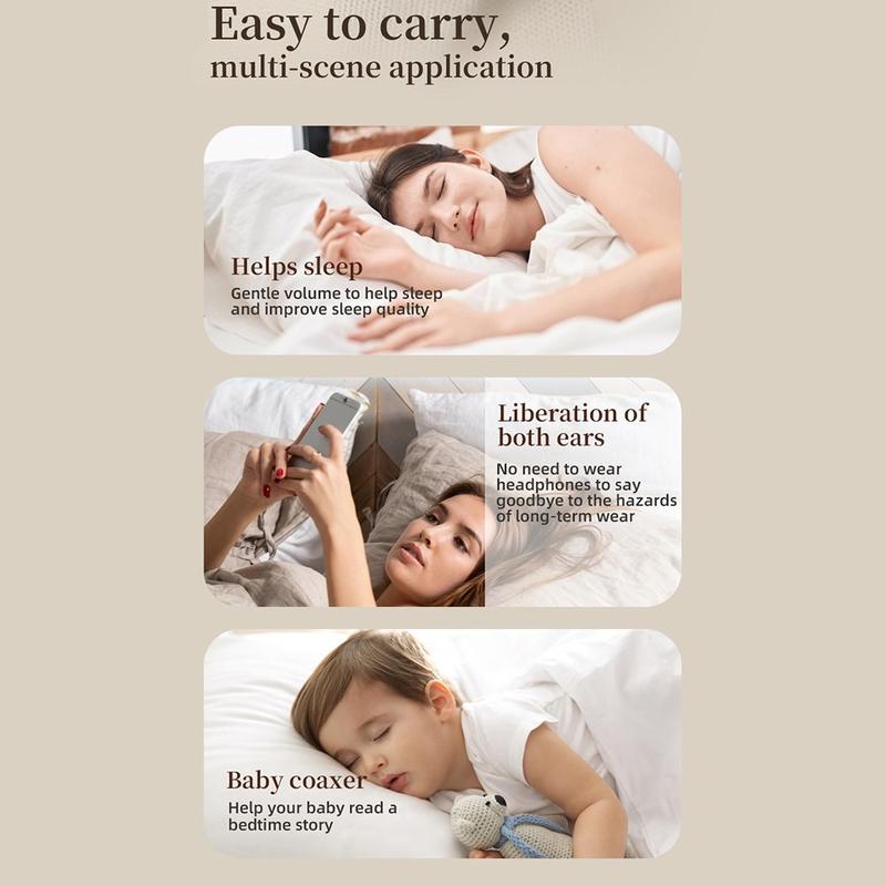 Oplev et nyt niveau af afslappende nætter med SMB-06 Smart Sleep Aid Under-Pillow Music Box. Med denne innovative benledningshøjttaler kan du nyde beroligende lyde eller søvnvejledende musik uden at forstyrre andre. Den trådløse Bluetooth-funktionalitet kan nemt parres med dine yndlingsenheder, og det diskrete design under puden giver klar og behagelig lyd, mens du falder i søvn.