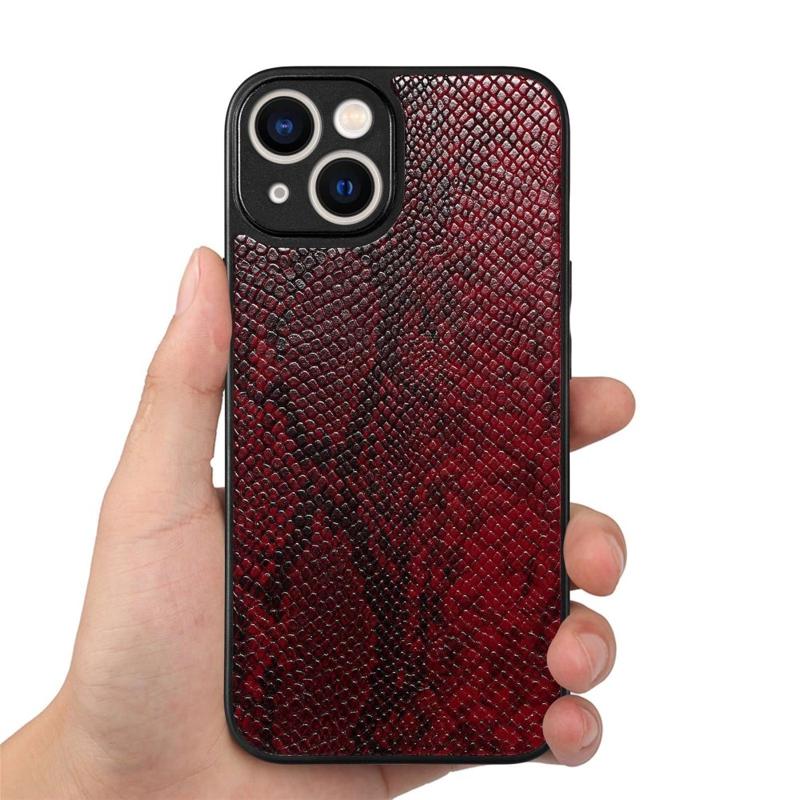 Til iPhone 14 Stødsikkert telefonetui med præcis udskæring Snake Tekstur PU-læderbelagt TPU-bagcover