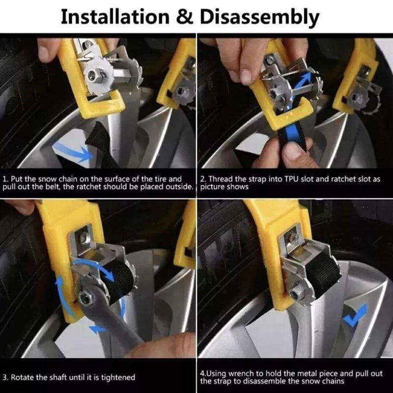 Med gearlåsespænder og semi-intelligent fastgørelse er monteringen hurtig og problemfri. Du kan sætte dem på eller tage dem af inden for få minutter uden professionel hjælp, hvilket gør dem praktiske i nødsituationer i vejkanten.