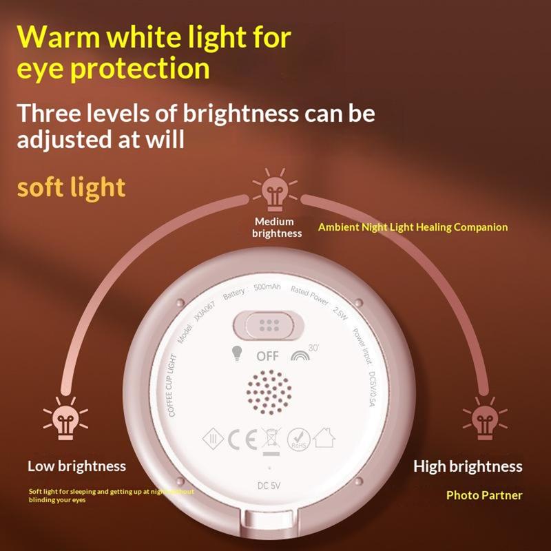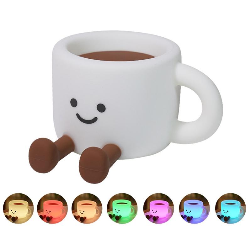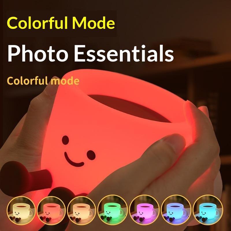 Tilføj hyggelig stemning til ethvert rum med denne søde natlampe i form af en kaffekop - en sjov sengelampe, der også fungerer som telefonholder og bærbar stemningslampe. Med 7 farveskiftende LED-indstillinger og 3 lysstyrkeniveauer er den perfekt til afslappende aftener, et blødt natlys eller til at skabe stemning til fotos og video. Enkel trykbetjening gør den nem at bruge, mens den 30 minutters automatiske slukning hjælper med at spare energi og forhindrer, at lyset forbliver tændt hele natten. Den er lavet af blødt silikone i fødevarekvalitet, føles behagelig at røre ved og kan endda fungere som et stressaflastende krammedyr. Den kan genoplades via USB-C og er nem at tage med på rejser, camping eller hyggelige arrangementer hvor som helst.