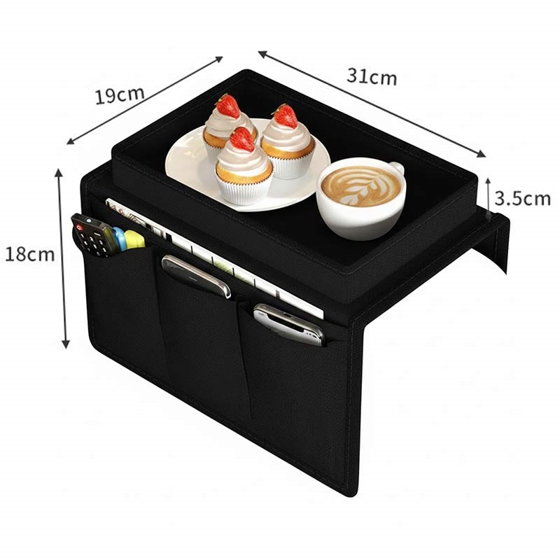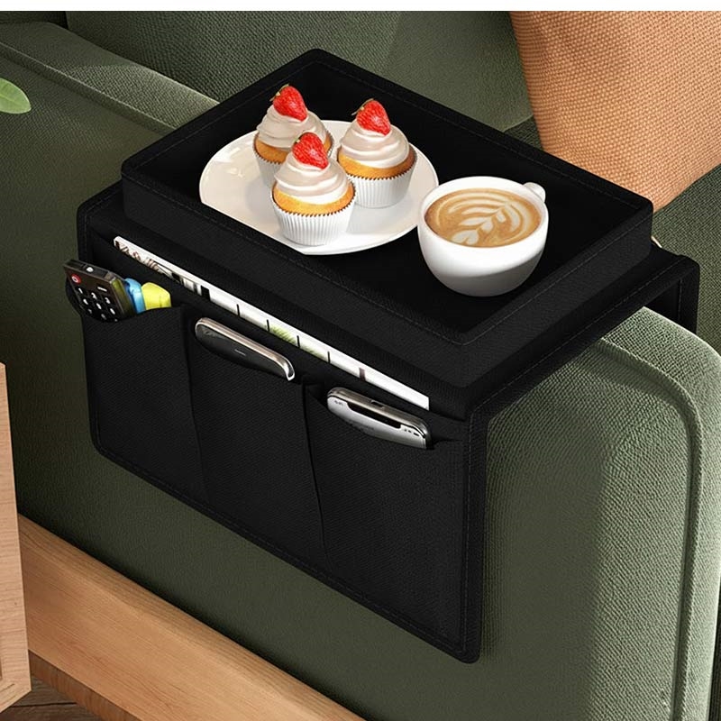 Den pladsbesparende Sofa Armrest Organizer er en smart og praktisk måde at holde din bolig ryddelig på ved at opbevare dine daglige fornødenheder lige ved siden af dig. Den er lavet af slidstærkt oxford-stof, der modstår støv og slitage og sikrer langvarig brug uden at miste formen. Den forstærkede centrale bakke af oxfordstof og pap giver stabilitet og holder tingene pænt arrangeret.