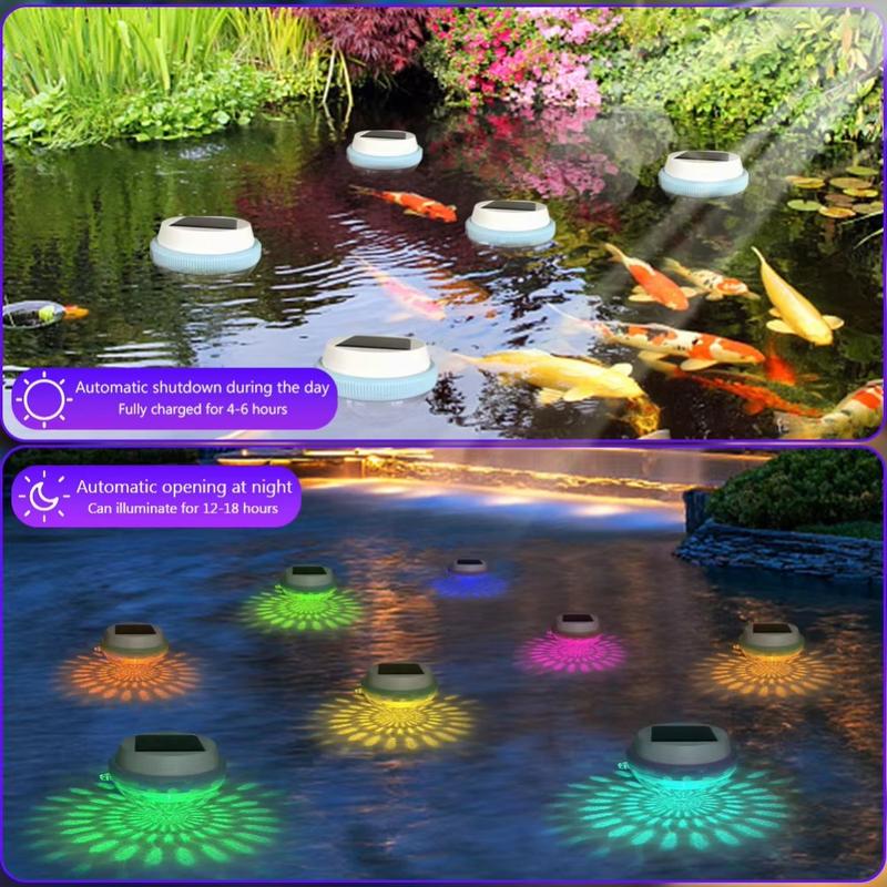 Solcelledrevet flydende poolbelysning med farveskiftende LED'er