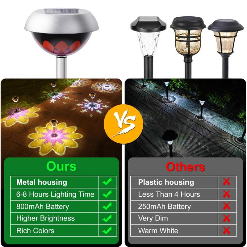 - Solsikkeprojektionsplade - den nyeste generation af optik giver skarpere og mere farverige blomster end standardplænelys.